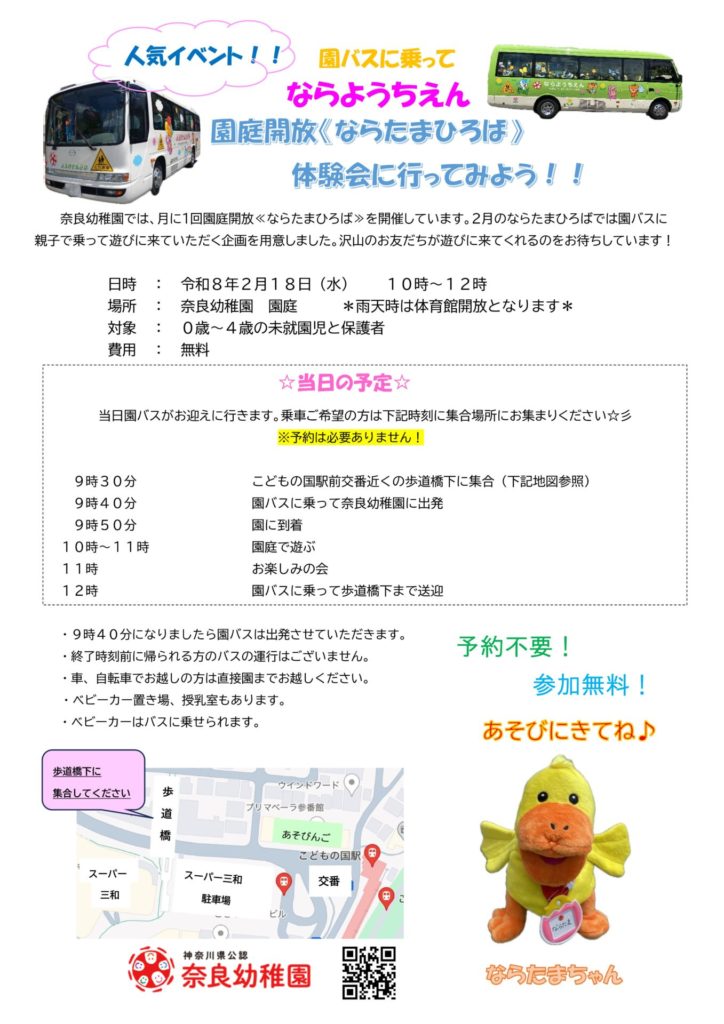 土曜日に開催している園庭開放に加え、平日園庭開放《ならたまひろば》を開催しています。